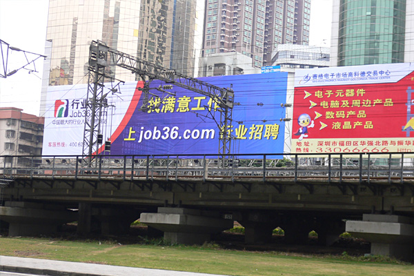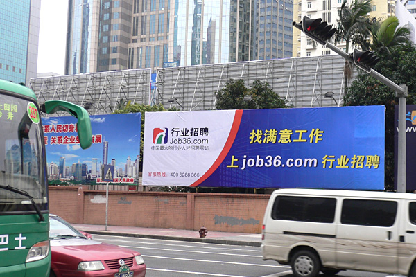 JOB36行业招聘2008年度广告投放计划之二,位于深圳火车站进出口最显眼位置各一块,是进出火车站的必经之路,不经意间job36已经进入了您的眼帘;东侧是深圳最大的公交车站和长途客运站,有200多条线路的公交车在这里穿梭;西侧比邻香格里拉大酒店;南临香港;周边有深圳最大的商务中心,多家五星级酒店和休闲娱乐中心。火车站路口集车流量、人流量最多为一体。广告媒体面积最大、视觉最好、受众最多,是深圳的顶级黄金广告位之一。