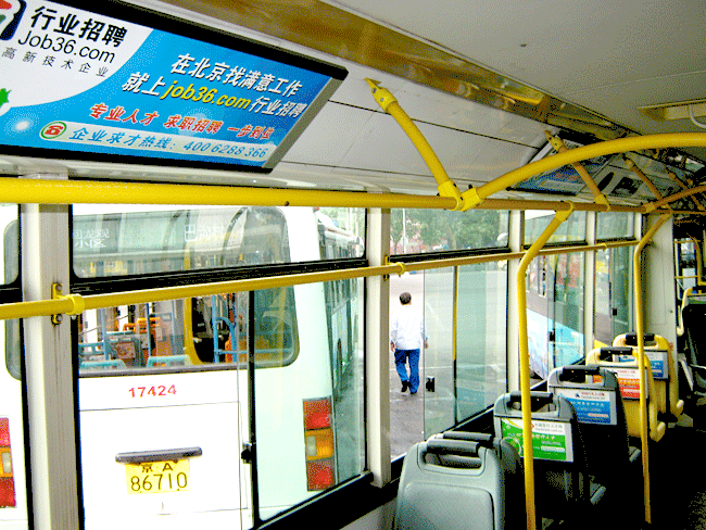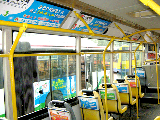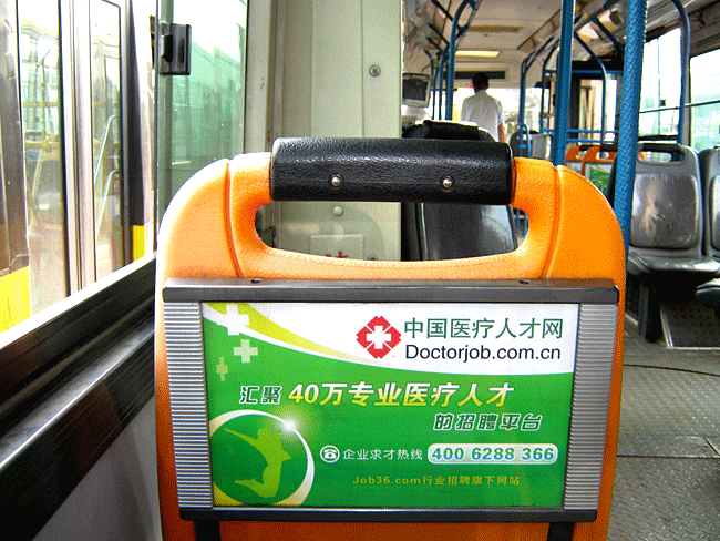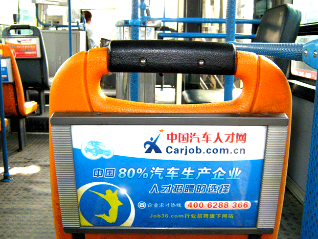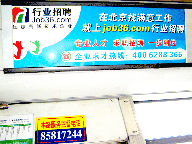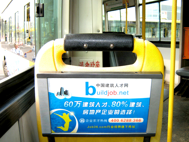 广告形式:Job36和旗下行业网站同时投放广告,覆盖整个公交车的挂板和座椅。